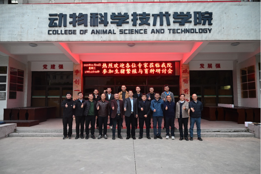 2023年1月4日,新年伊始,在动科院302会议室举办了“2022生物资源保护与利用国际产学研用合作会议”的主题研讨会“生猪繁殖与育种研讨会”。参加研讨会人员有动科院领导陆阳清常务副院长、何家康副院长、韦祖樟副院长及骨干教师,河南守望之境科技有限公司创始人刘洪波博士,区内养猪企业育种主要负责人赵云翔、司景磊、何昭友等,大家围绕生猪繁殖与育种主题,分别从繁殖育种、饲料营养、疫病防控、生产管理角度展开了热烈讨论。