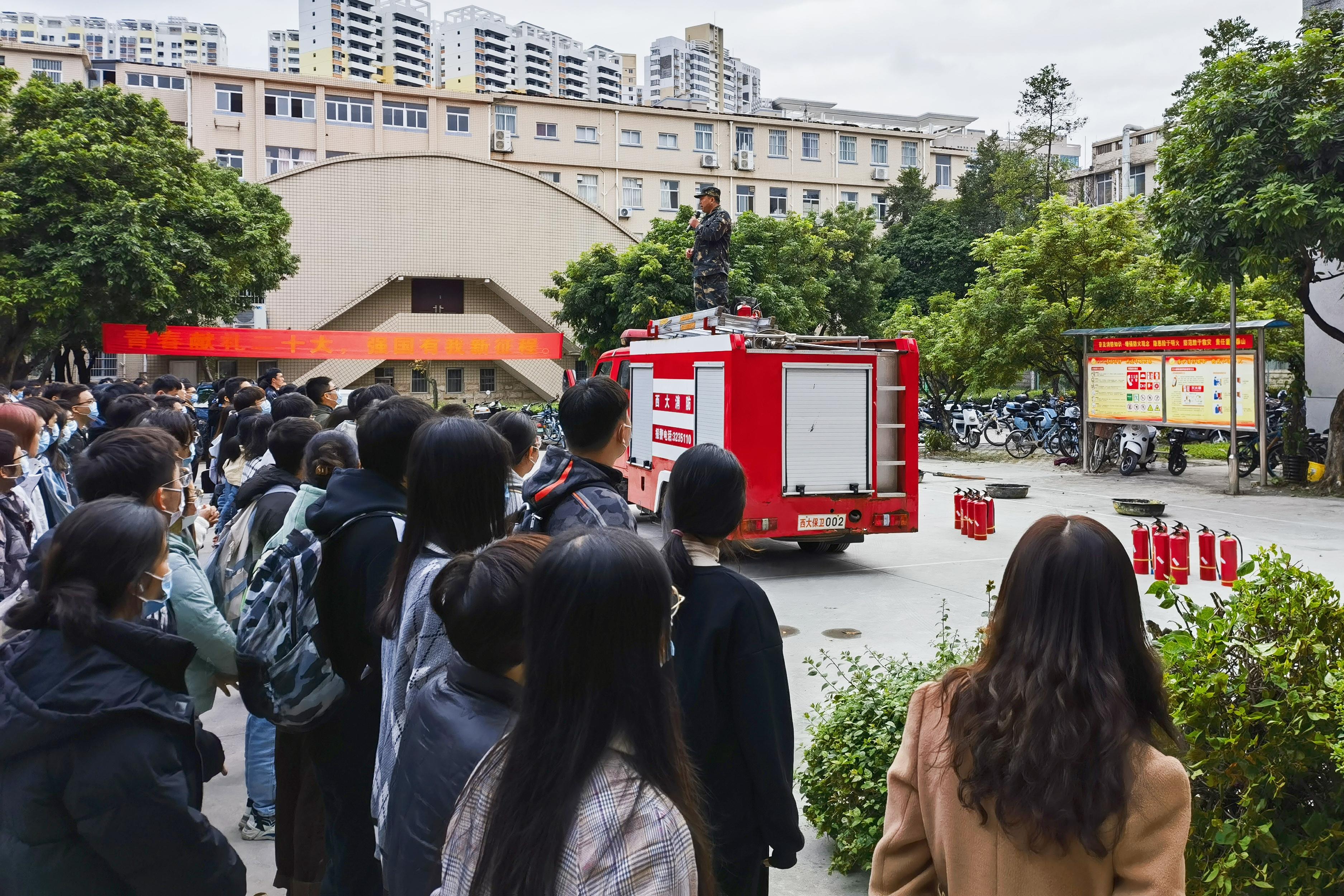 12月2日下午,乐动网页版登录入口组织2022级本科生、研究生在学院前坪开展消防安全演练。