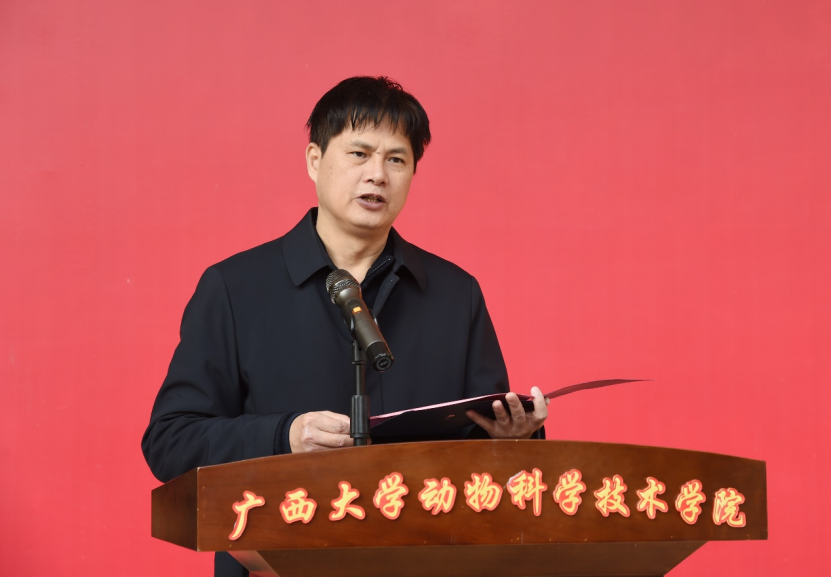 12月30日下午,在乐动网页版登录入口广场举行了“广西畜禽繁育与疾病防控重点实验室” 和“广西壮族自治区兽用生物制品工程研究中心”两个省级科研平台的隆重揭牌仪式。广西大学副校长罗廷荣和广西农业农村厅副厅长梁纪豪先后致辞。我院常务副院长陆阳清主持揭牌仪式。