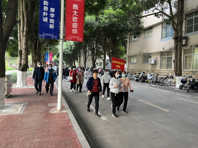 院党委书记顾慕娴宣布活动开始后,会员们井然有序,意气风发地健步行进,经图书馆、崇左桥、体育学院、汇学堂、电气学院、土木学院、综合楼、数信学院、计算机学院等既定路线,最终由崇左桥回到学院。一路上,大家赏校容、谈时事、聊家常,欢声笑语、其乐融融。(文/施君,图/施君、余丽江)