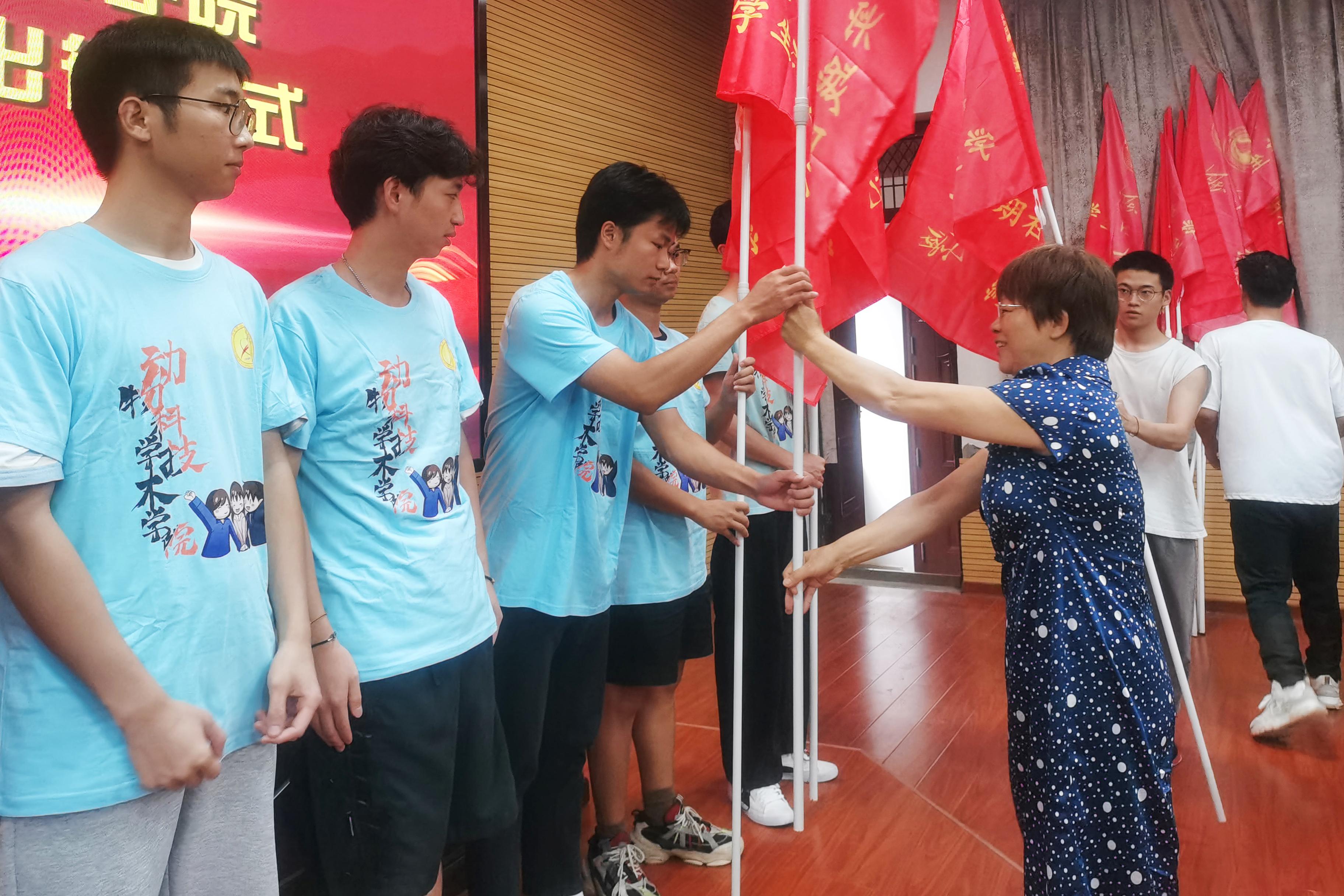随后,顾慕娴老师在仪式上讲话,并为各个社会实践团队授旗。她指出,近年来,学院社会实践活动结合学科专业优势,主动对接乡村振兴战略,为促进地方经济建设和社会发展作出了积极贡献,为学院、学校带来了良好的社会效应,希望各个社会实践团队要勇担使命,积极对接社会发展需要;要学以致用,切实增强服务社会本领;要精心组织,努力提升社会实践成效,并鼓励大家拥抱新时代,奋进新时代,以实现中华民族伟大复兴为己任,在社会实践活动中亮出动科学子最靓丽的青春底色。