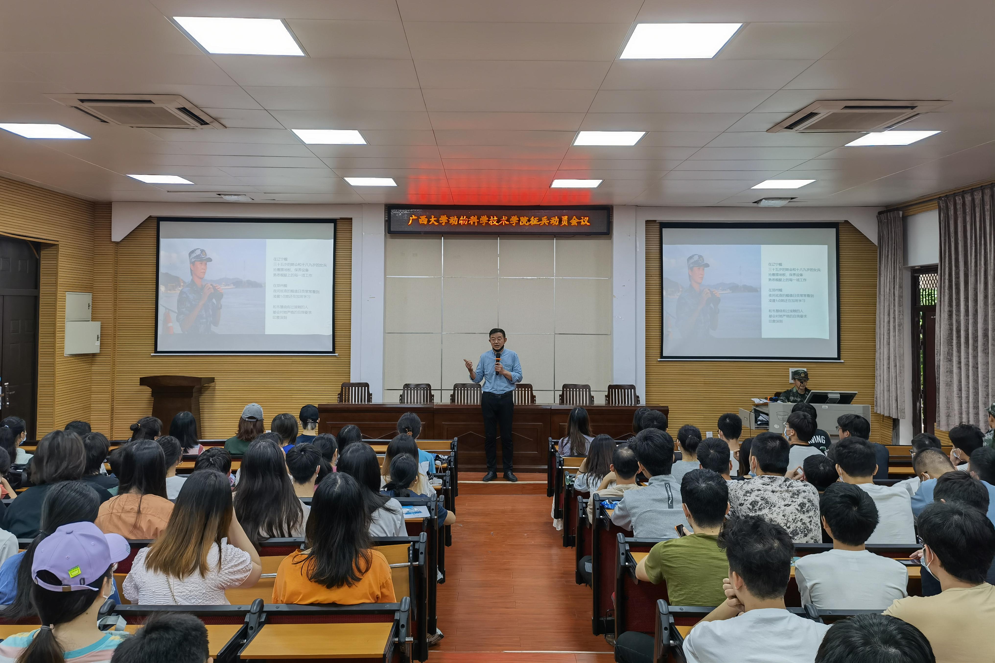 5月20日下午,乐动网页版登录入口在318报告厅举行2022年秋季征兵动员会议,校武装部陈榕平和退伍大学生代表受邀到场为同学们详细讲解征兵政策。乐动(中国)团委书记李丽娜,团委副书记刘诚,辅导员彭可可和2022届毕业本科生参加此次会议。