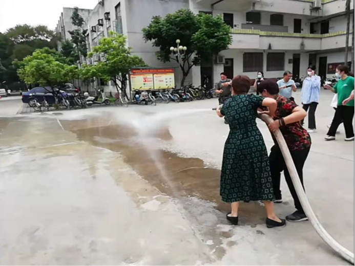 学院顾书记和郭老师在进行水枪灭火演练