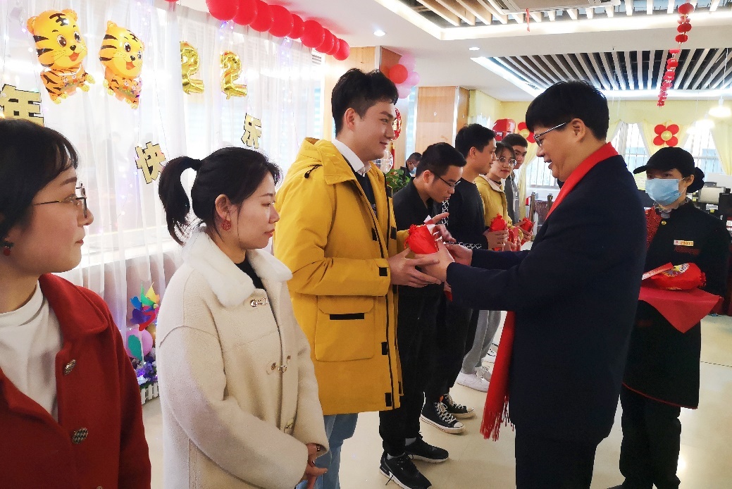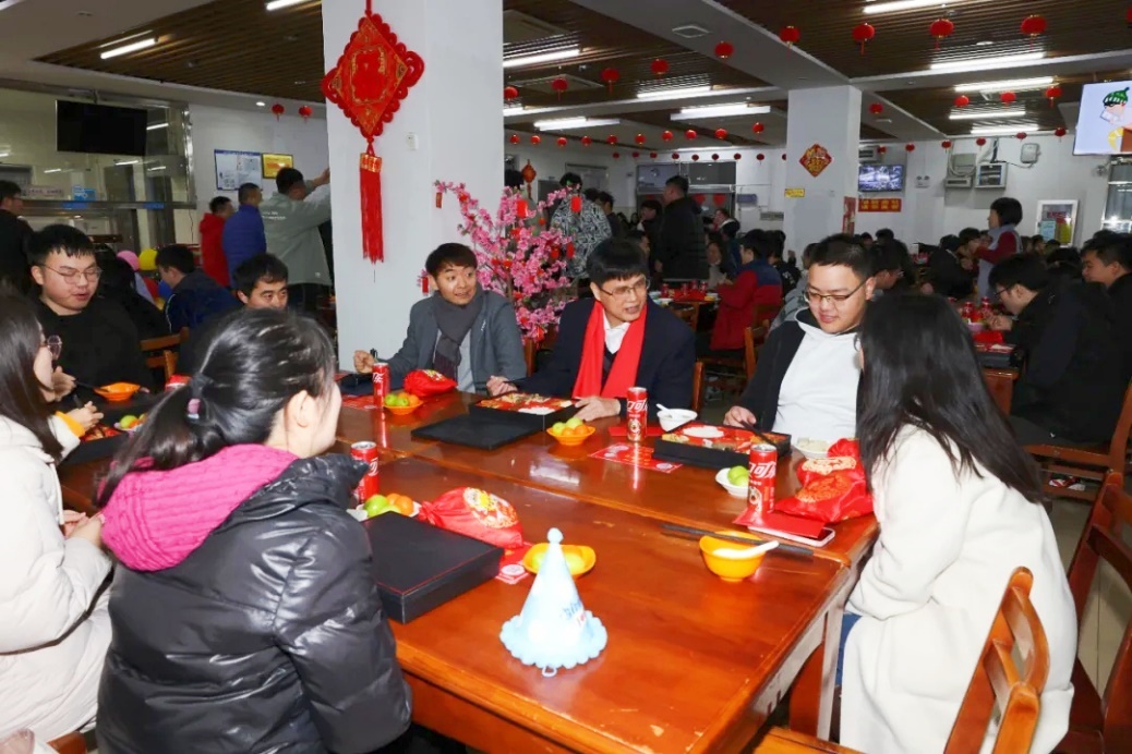 当天过生日的刘明晗同学说:“感恩学校的暖心安排,我将永远珍藏这份感动。留校过年也和回家一样,让我在这个别样的春节和庆生中感受到了满满的幸福。作为一名博士生,我会把这份温暖关怀化作学习和科研的动力。2022年,让我们一起向未来!”
