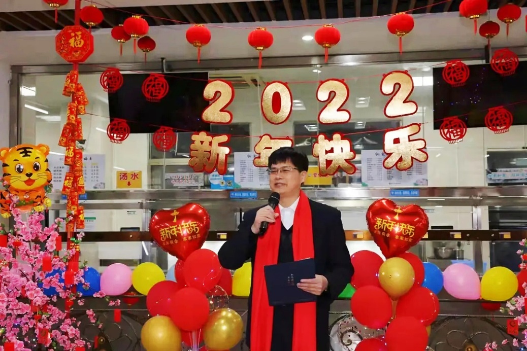 罗廷荣副校长代表学校向留校过年的同学们致以新春的问候,表达了殷切希望和美好祝福。他给大家送上“红包”和“福袋”,并为近两天过生日的2名同学庆生,与大家同唱生日歌、同切生日蛋糕,在一片欢声笑语和祝福声中将年夜饭推向高潮。