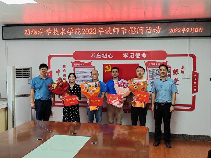 39个教师节来临之际,2023年9月8日上午,学院党委书记韦小强、院长陆阳清慰问教职工代表赵云翔、韦祖樟、宋子仪和李珣四名老师,为他们送上鲜花和慰问金,向他们致以节日的祝贺,并通过他们向全院教师致以节日的祝福。希望全院教职工不忘立德树人初心,牢记为党育人为国育才使命,共同建设好乐动网页版登录入口,为培养新时代“五有”领军型人才作出更大贡献。慰问活动由副院长宁鹏飞主持。