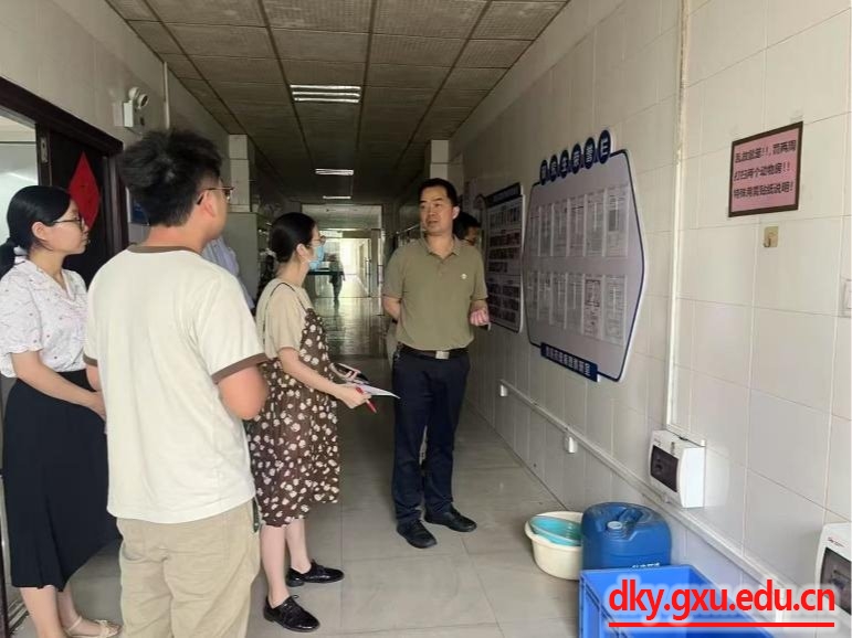 为确保五一假期期间学院各实验室安全运行,4月30日,乐动网页版登录入口党委书记韦小强,院长陆阳清,副院长蒋钦杨分别带队检查各教学和科研实验室安全。检查小组根据《广西大学实验室安全专项整治2025年规范年工作方案》要求,深入各个实验室,重点对危化品存储与使用、生物安全防护、仪器设备运行、用电用水规范以及消防安全设施配备等方面进行全面检查。对发现的安全隐患问题已要求相关实验室负责人进行整改。