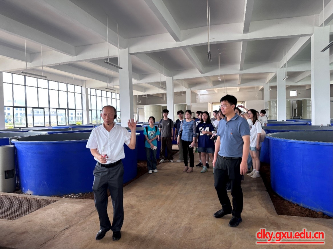 广西水产引育种中心肖珊主任为师生介绍基地整体情况
