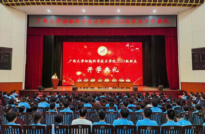 9月17日晚上,乐动网页版登录入口2025级新生开学典礼在大礼堂举行。广西大学原副校长、动物遗传育种与繁殖学科著名专家卢克焕,广西大学原副校长、兽医学科带头人罗廷荣,乐动(中国)党委书记韦小强,院长陆阳清,农牧产业发展研究院院长司红彬,副院长宁鹏飞、韦祖樟、蒋钦杨出席典礼。乐动(中国)党委副书记、纪委书记沙建主持典礼。知名专家和教师代表、班主任、辅导员以及2025级全体新生参加活动。