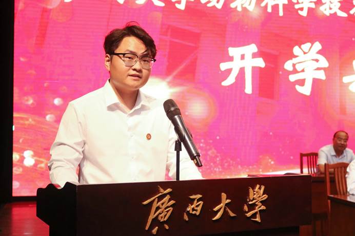 陆阳清院长对2025级新生的到来表示热烈欢迎,并从办学历史、学科建设、师资队伍、人才培养、科学研究、国际交流等方面介绍学院基本情况。他指出,乐动(中国)深厚的历史底蕴、特色的学科专业、优秀的师资队伍、浓厚的学术氛围、丰富的学习资源是同学们拼搏奋斗的动力源泉,将指引大家明确成长方向、探寻成长道路。他勉励同学们秉承广西大学“勤恳朴诚”校训精神,以“锄头主义”和“三拼精神”深耕畜牧兽医行业的沃土,在建设农业强国的征程中贡献青春智慧和力量!
