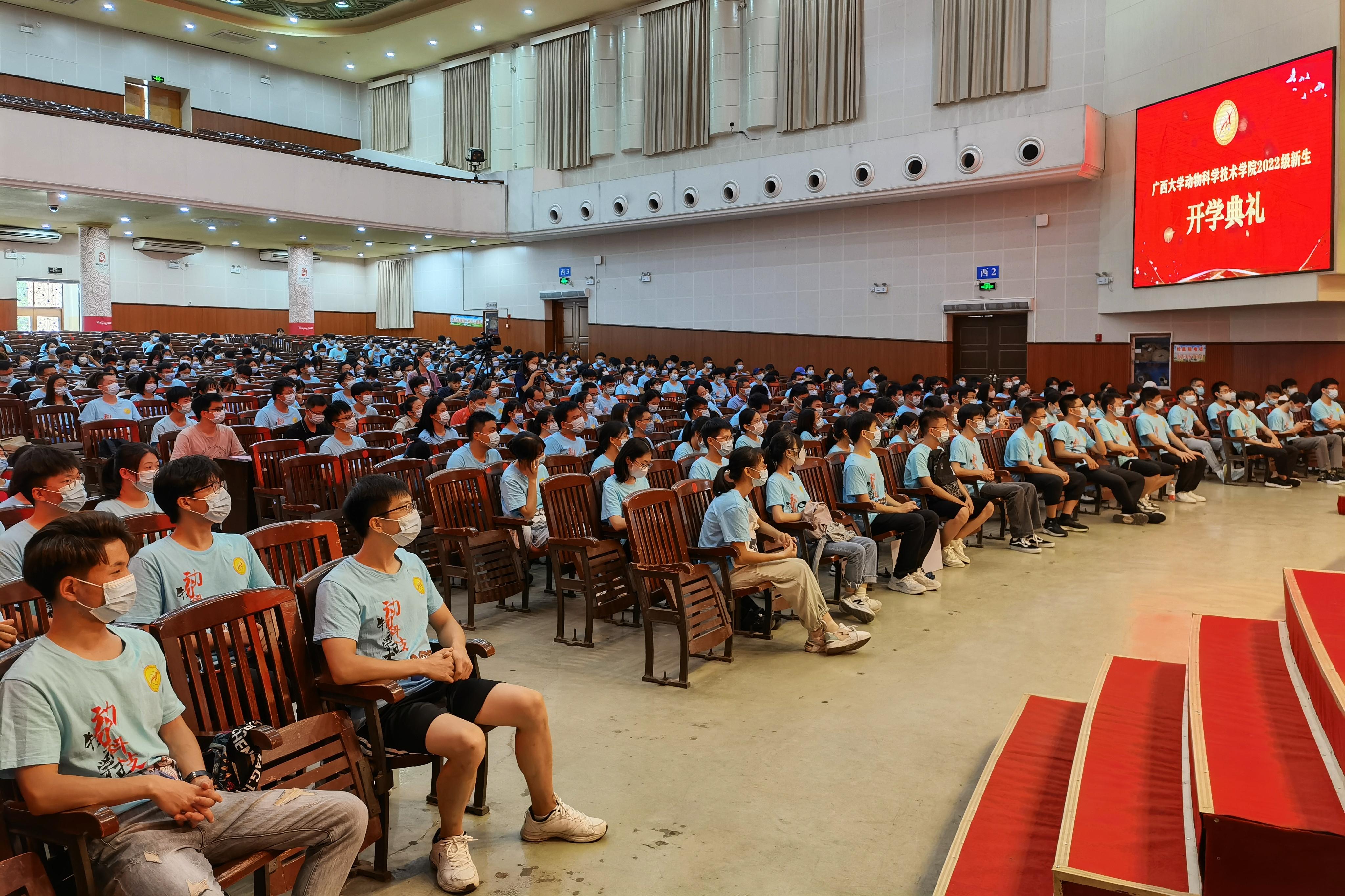 9月17日下午,乐动网页版登录入口2022级新生开学典礼在大礼堂举行。广西大学党委常委、副校长、教务长罗廷荣,原副校长卢克焕,乐动(中国)党委书记顾慕娴,常务副院长陆阳清,原院长石德顺,科技处副处长司红彬,副院长周磊、宁鹏飞、何家康、韦祖樟出席典礼。乐动(中国)党委副书记沙建主持典礼。知名专家和教师代表、班主任、辅导员以及2022级520名新生参加活动。
