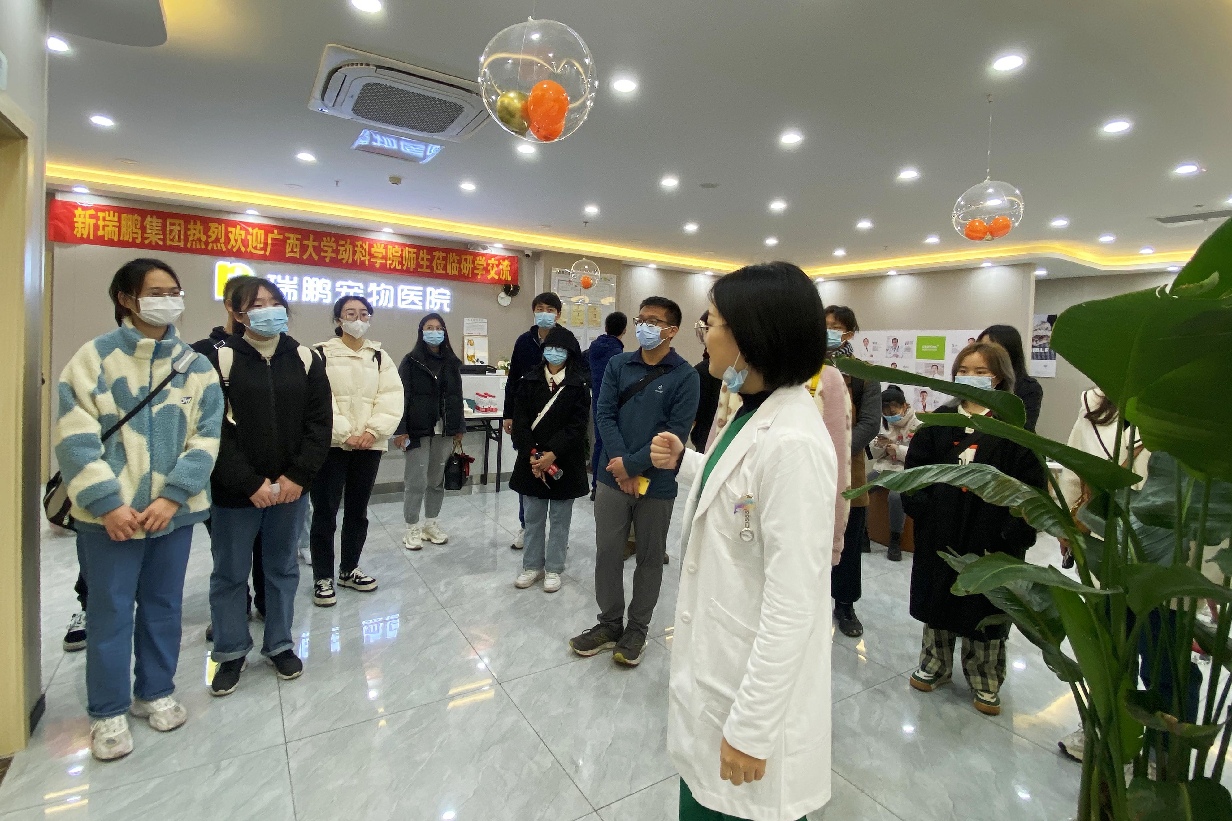 1月9日上午,乐动网页版登录入口师生前往新瑞鹏宠物医疗集团开展寒假社会实践活动。乐动(中国)团委书记李丽娜,团委副书记刘诚,辅导员邹佳琪,以及含台湾籍学生在内的20余名本科生、研究生代表参加此次活动。
