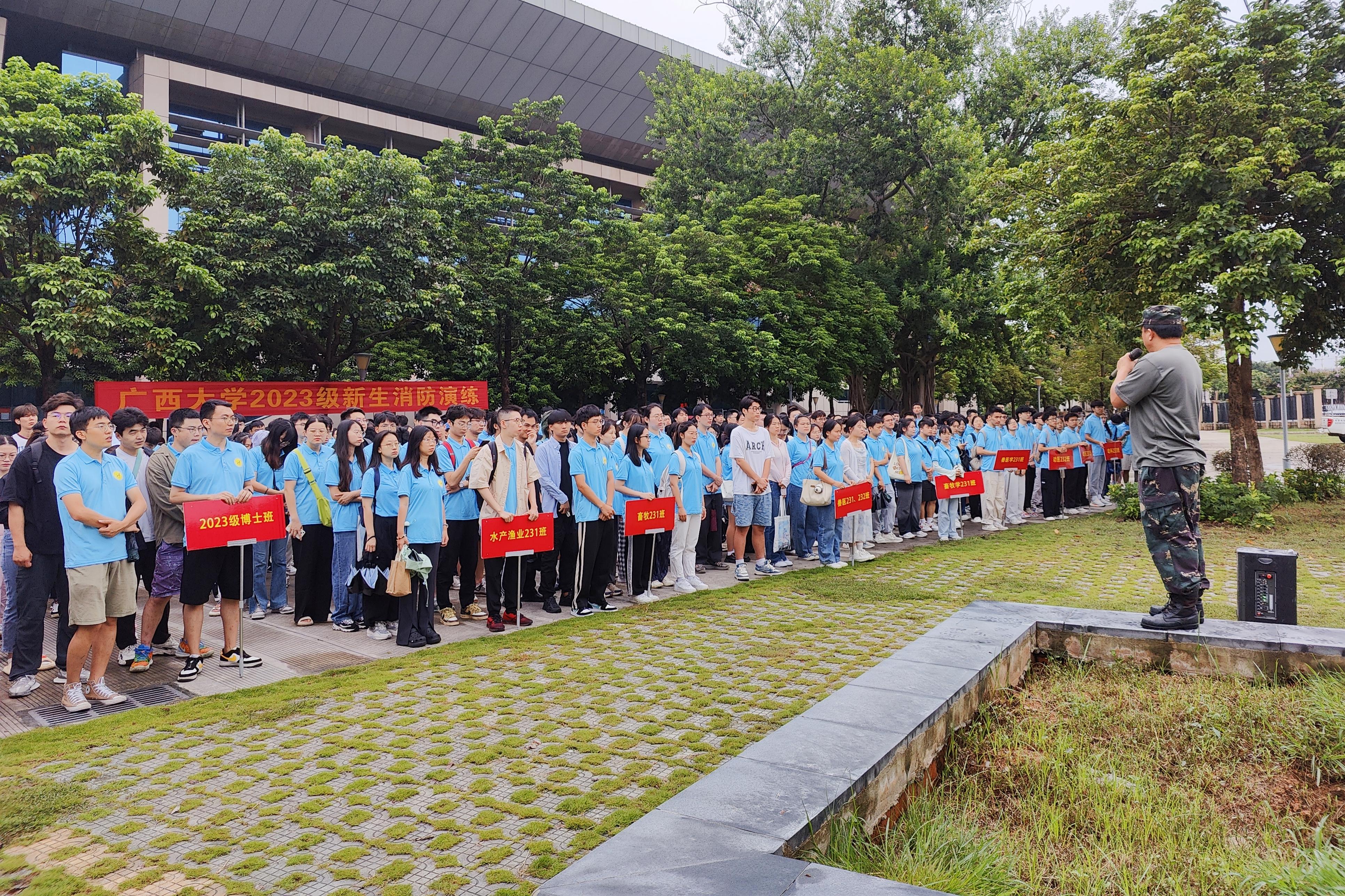 9月15日上午,乐动网页版登录入口组织2023级本科生、研究生在西校园综合体育馆旁开展消防安全演练。