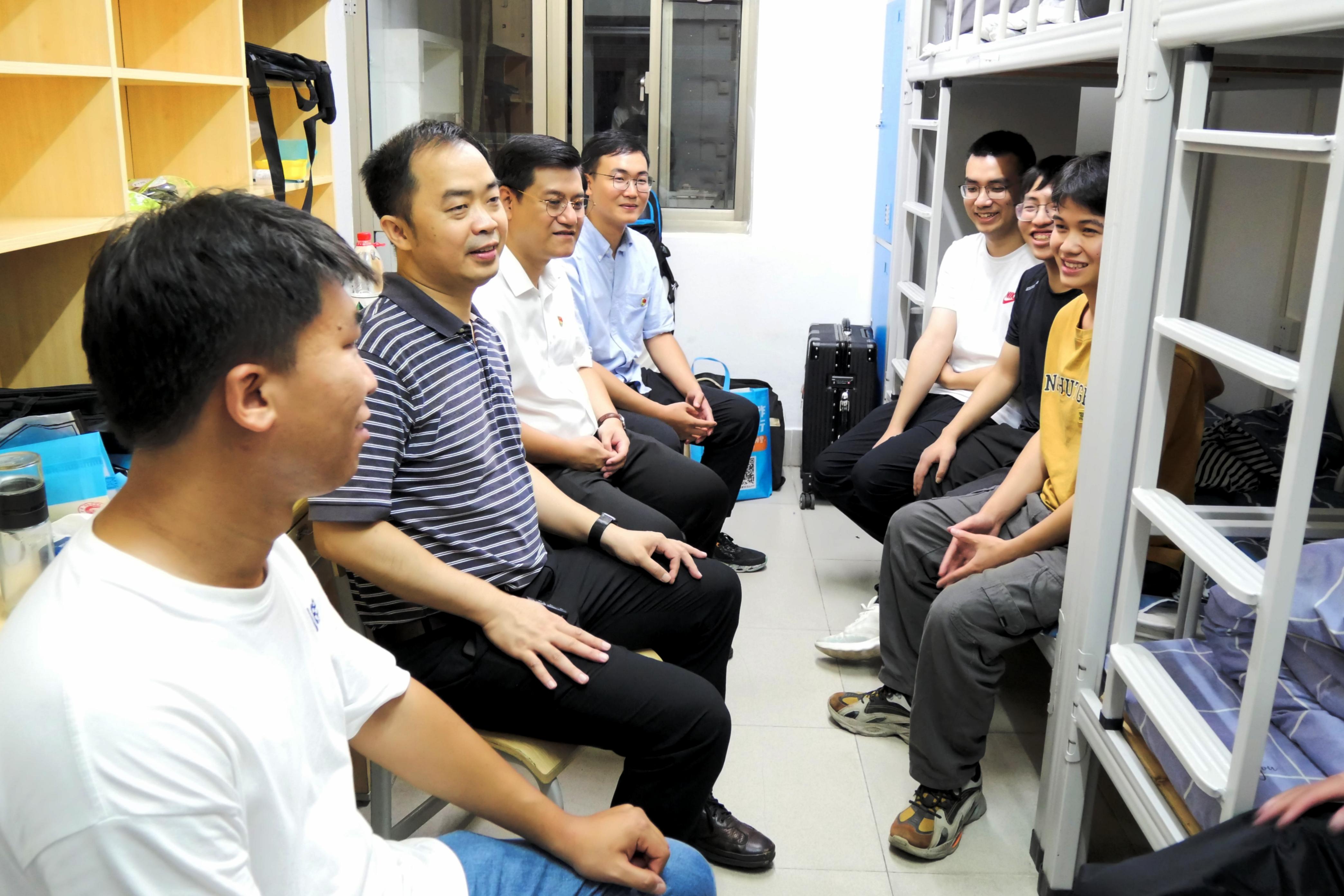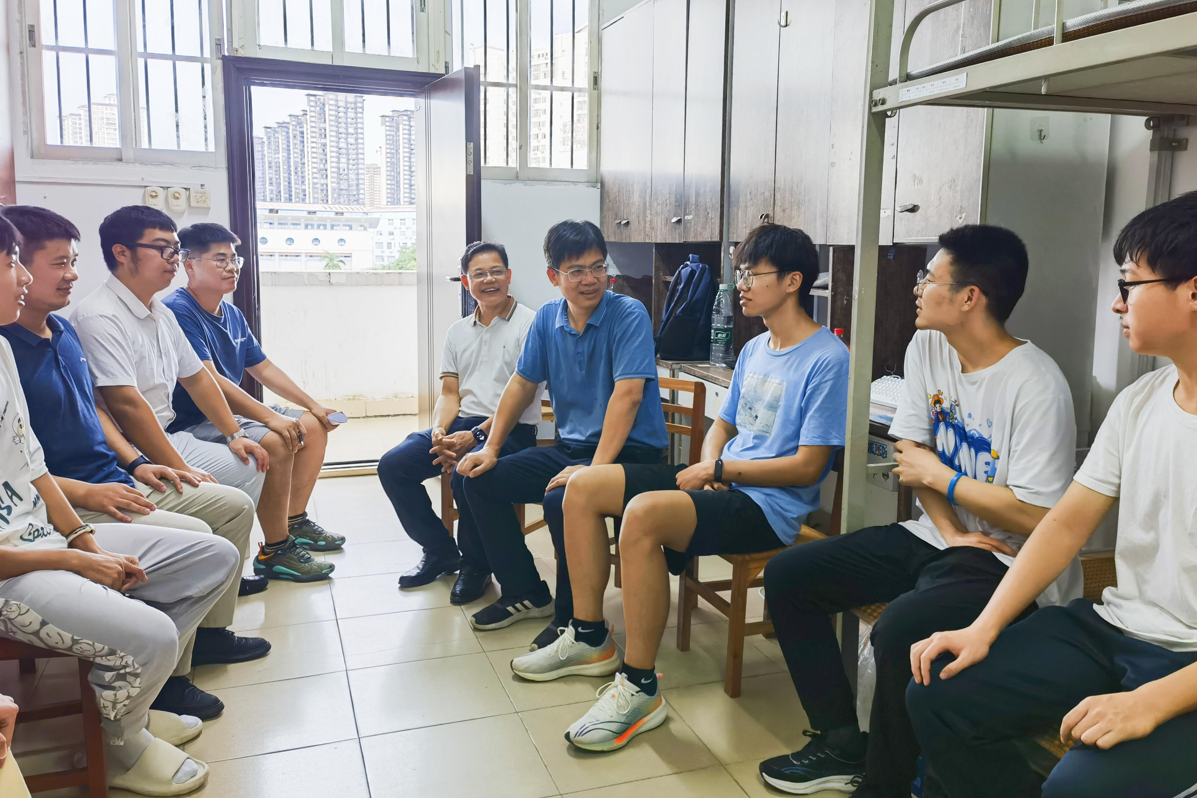 9月9、10日下午,乐动网页版登录入口党委书记韦小强,院长陆阳清,党委副书记沙建,副院长宁鹏飞、何家康、韦祖樟,院长助理、动物科学系主任蒋钦杨,动物医学系主任陈樱,团委书记李丽娜,团委副书记刘诚,辅导员彭可可、邹佳琪、马朝阳,班主任庄站伟、张瑞门、冉明霞、钟秋、韦懿仙、陈富美、牟婧、雷磊,以及团委、学生会、研究生会学生骨干,来到东1A栋、东16栋、东22栋、西21栋学生宿舍,分别走访慰问乐动(中国)2023级本科生、研究生。