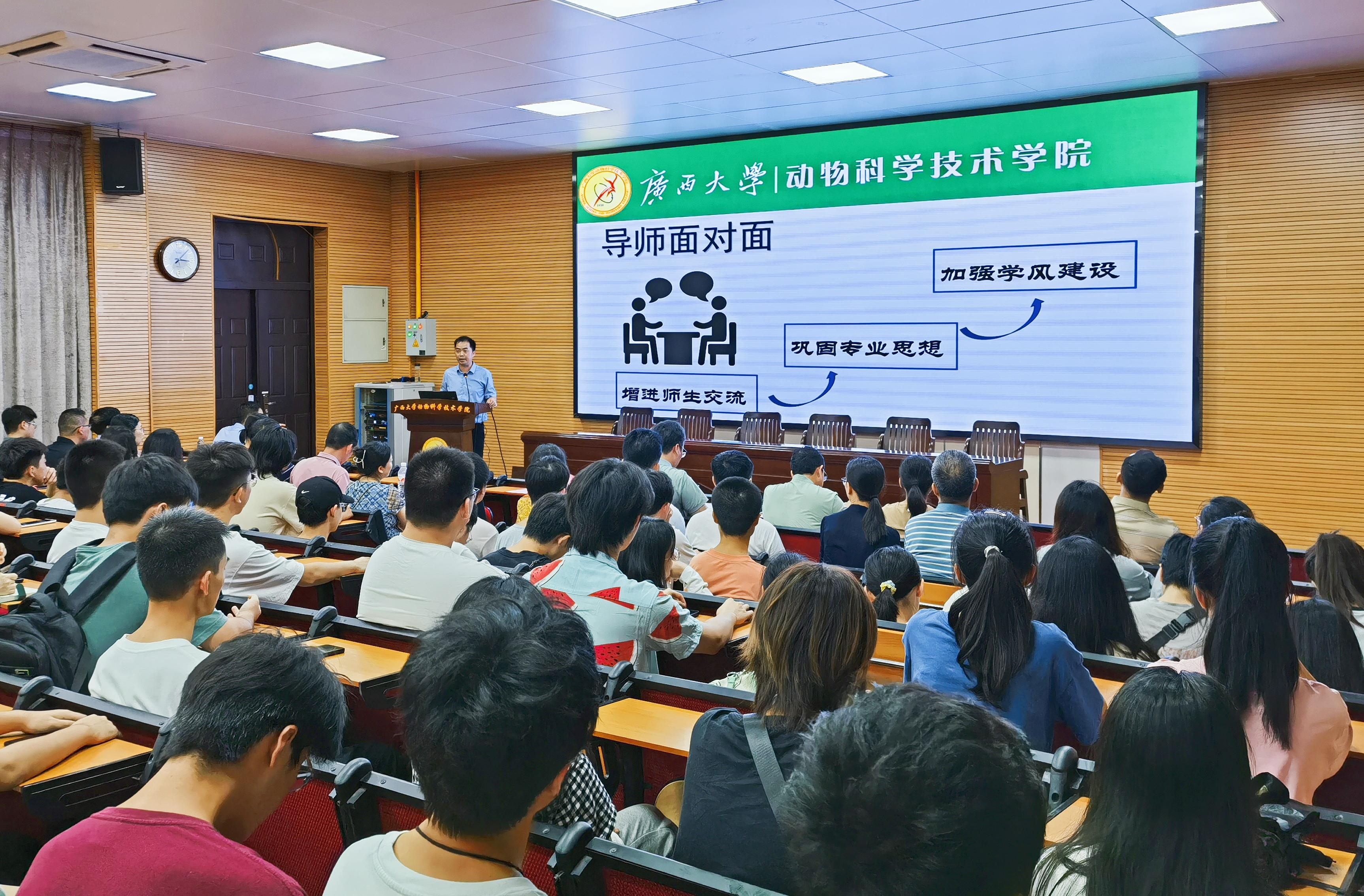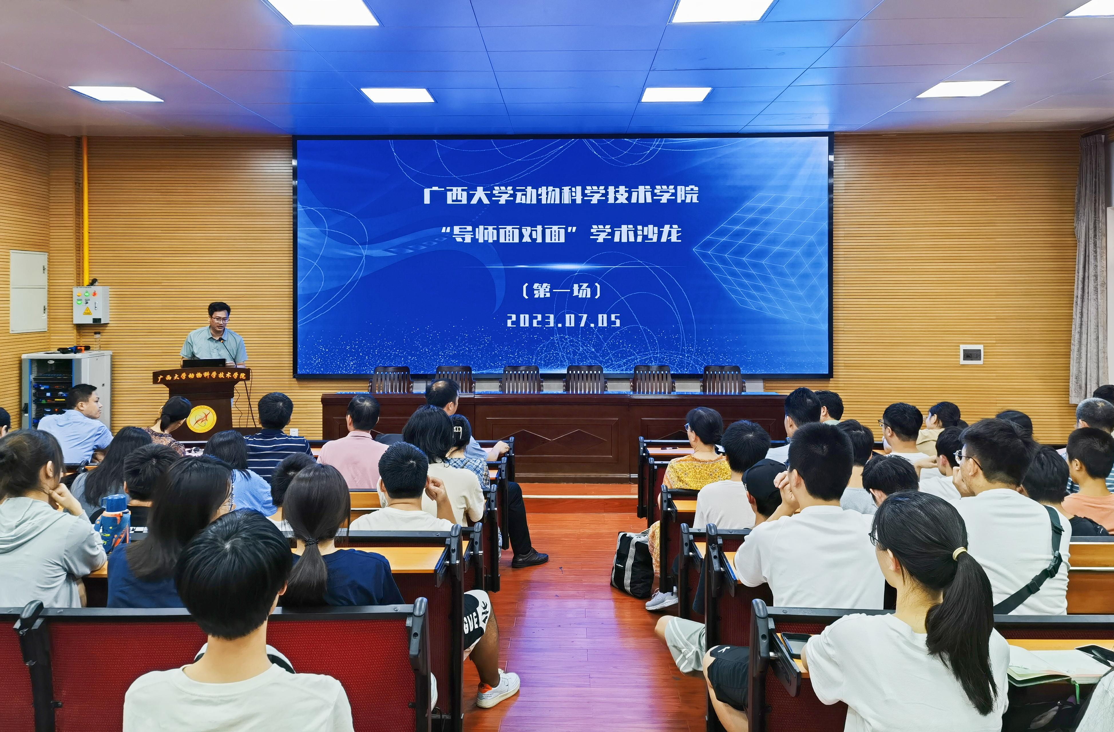 为巩固专业思想,加强学风建设,增进师生交流,营造学术氛围,7月5日下午,乐动网页版登录入口在学院318报告厅举办第二季“导师面对面”学术沙龙(第一场),邀请石德顺、陆阳清、陆凤花、蒋钦杨、胡传活、梁兴伟、李一星、潘红平、林波、黄艳娜、宋子仪、黄洁萍、刘兴廷、孔志伟、王健、张瑞门、吴昱果17位导师嘉宾到场分享个人经历、人才培养和科研方向,并与学生互动交流,共同探讨学业规划、职业发展和个人成长。动物科学专业2022级全体本科生参加此次活动。