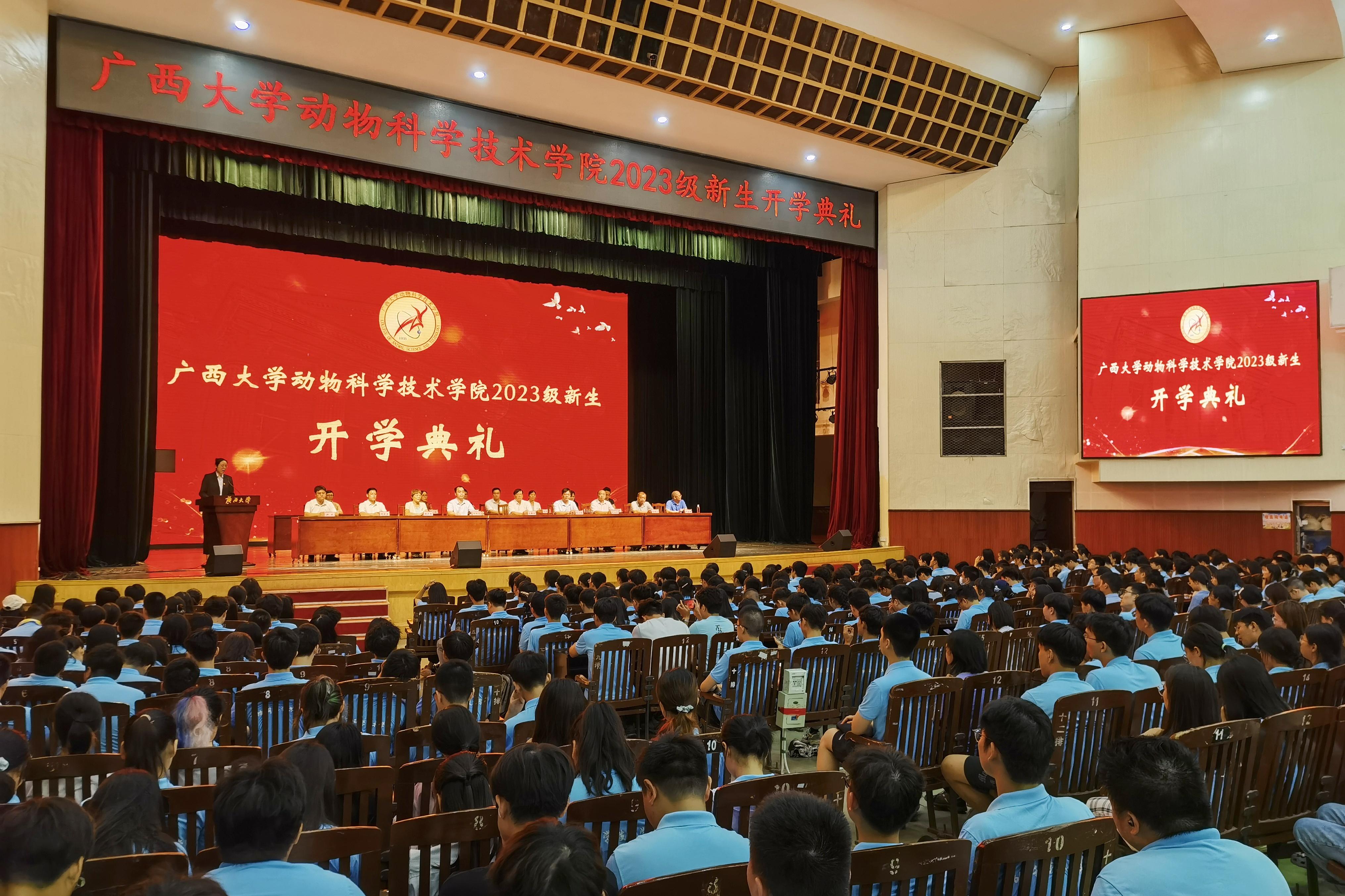 9月17日晚上,乐动网页版登录入口2023级新生开学典礼在大礼堂举行。动物遗传育种与繁殖学科知名专家石德顺,乐动(中国)党委书记韦小强,院长陆阳清,农牧产业发展研究院院长司红彬,乐动(中国)原书记、五级职员顾慕娴,副院长宁鹏飞、何家康、韦祖樟出席典礼。乐动(中国)党委副书记沙建主持典礼。知名专家和教师代表、班主任、辅导员以及2023级584名新生参加活动。