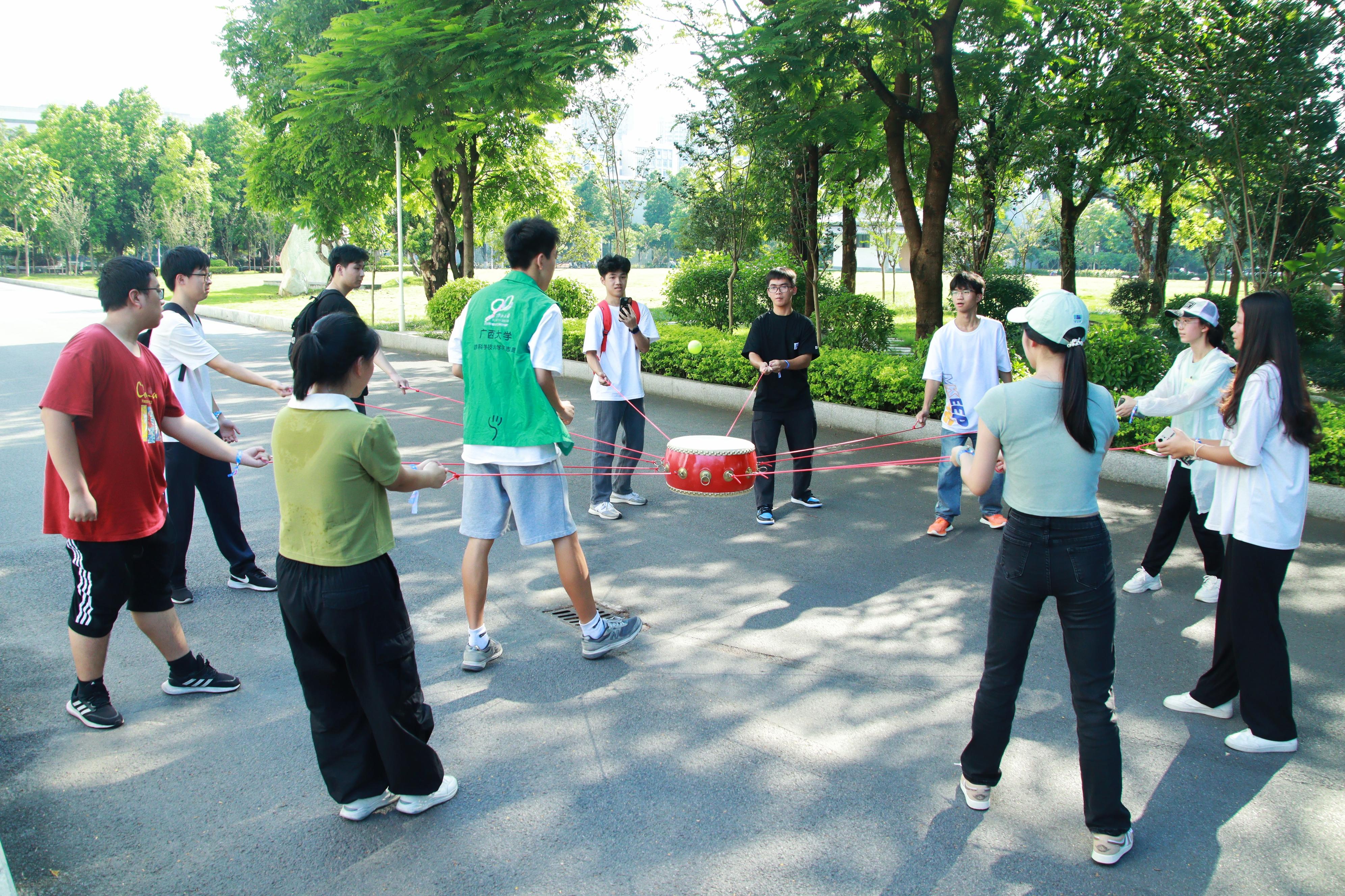 本次活动以游戏为载体,以运动为依托,分别在育才广场、大礼堂、汇学堂、图书馆、大学生活动中心、学生军纪念碑等校园标志性区域设置了6个游戏站点。乐动(中国)2023级本科生全员参与,随机分为20组,通过不同路径前往游戏站点,进行了“你的名字”、背篓接绣球、击鼓颠球、无敌风火轮、袋鼠跳、接力长绳等寓教于乐的团队训练项目,使得大家既在轻松有趣的氛围里,以游戏的形式增进了彼此间了解和信任,又在充满挑战的环境中,以团队的方式感受到集体的力量和智慧。