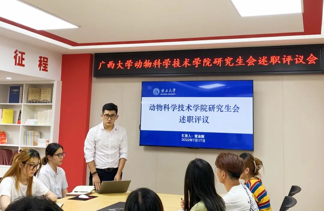 研究生会主席团成员各自从思想政治、专业学习、工作成效、纪律作风和个人成长等方面依次进行述职。