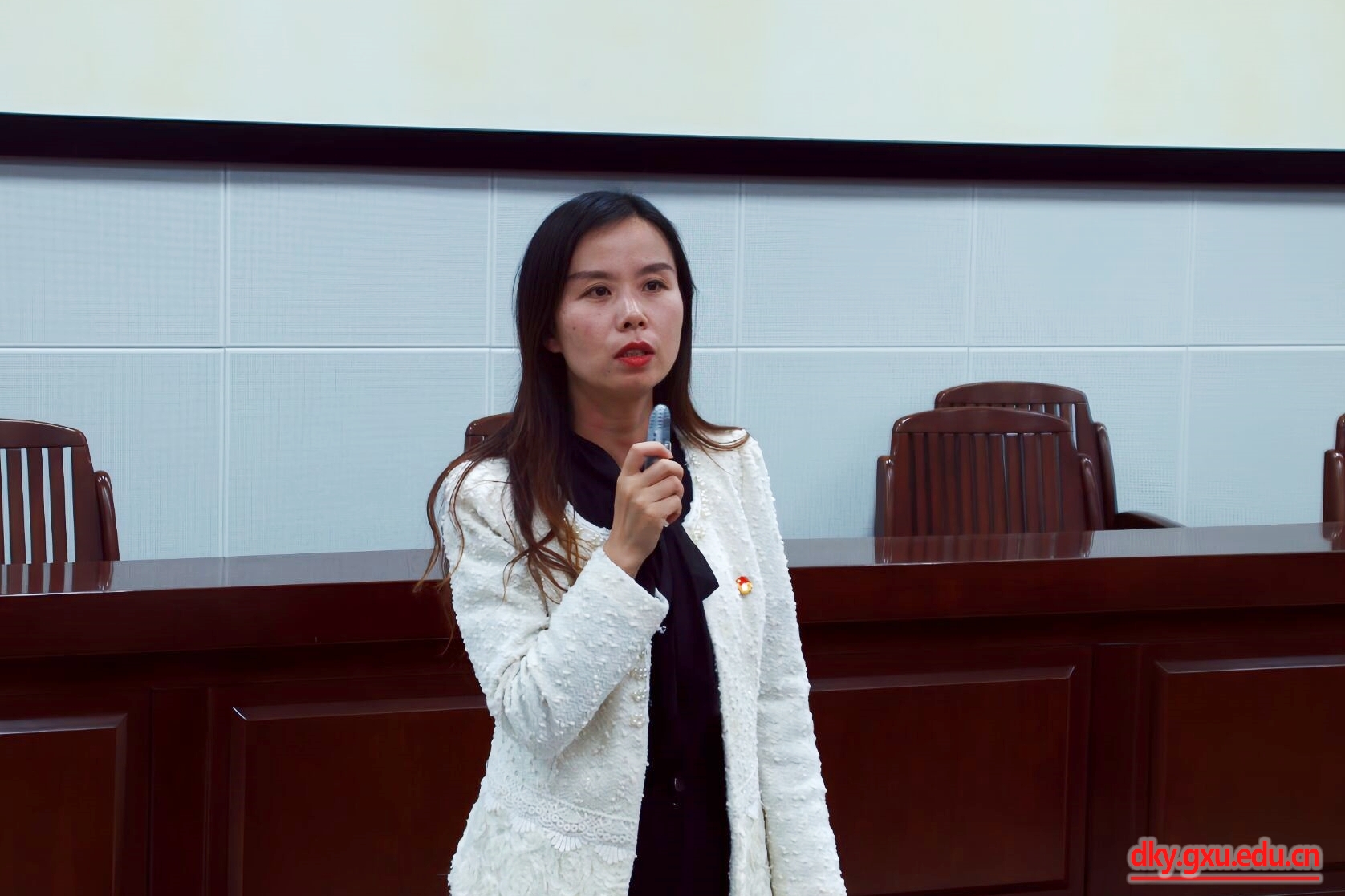 李丽娜老师代表学院团委,向新团员们表示祝贺,并寄予厚望,希望他们能够牢记自己在团旗下的庄严宣誓,用自己的实际行动来践行团员的职责和义务,为团旗增辉,为青春增色,为早日成为国家栋梁之材而奋发努力!
