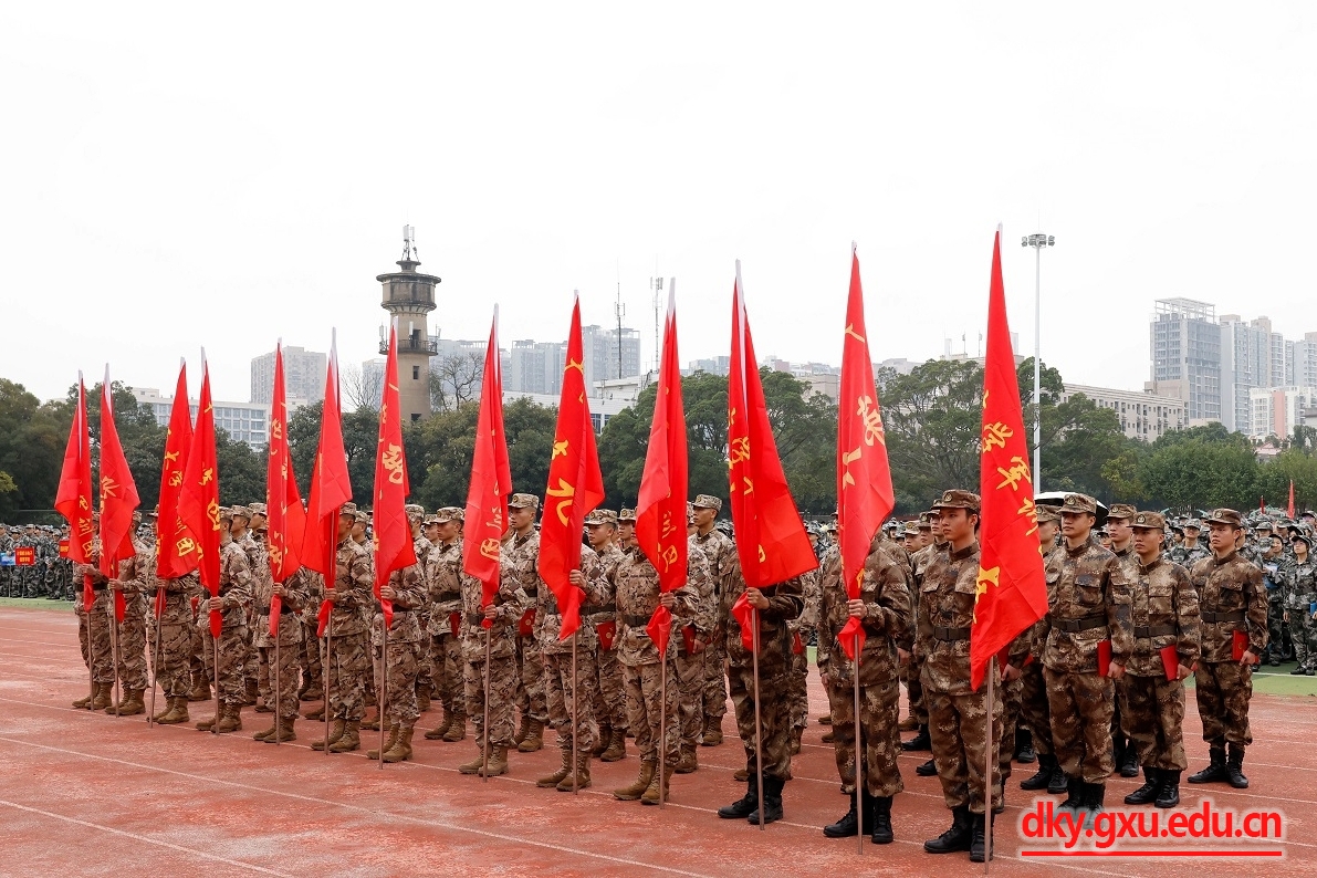 1月13日下午,广西大学2023级学生军训动员大会在西校园田径场举行。广西大学党委副书记马献力,武警广西总队南宁支队和广西大学军训领导小组相关领导,以及各学院相关军训负责人,全体2023级本科生参加大会。