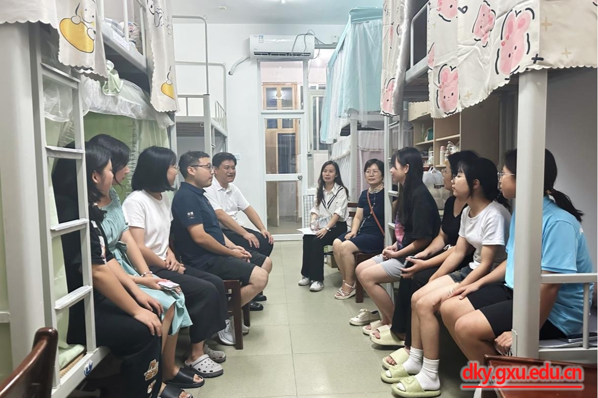 9月1日晚上,乐动网页版登录入口党委书记韦小强,院长陆阳清,党委副书记沙建,副院长宁鹏飞、何家康,团委书记李丽娜,团委副书记刘诚,辅导员崔月明、邹佳琪、马朝阳,班主任尹业师、贺宇成、罗栋、时学锋,以及团委、学生会、研究生会学生骨干,来到东3栋、东19栋、东31栋和东34栋学生宿舍,走访慰问2024级本科生、研究生。