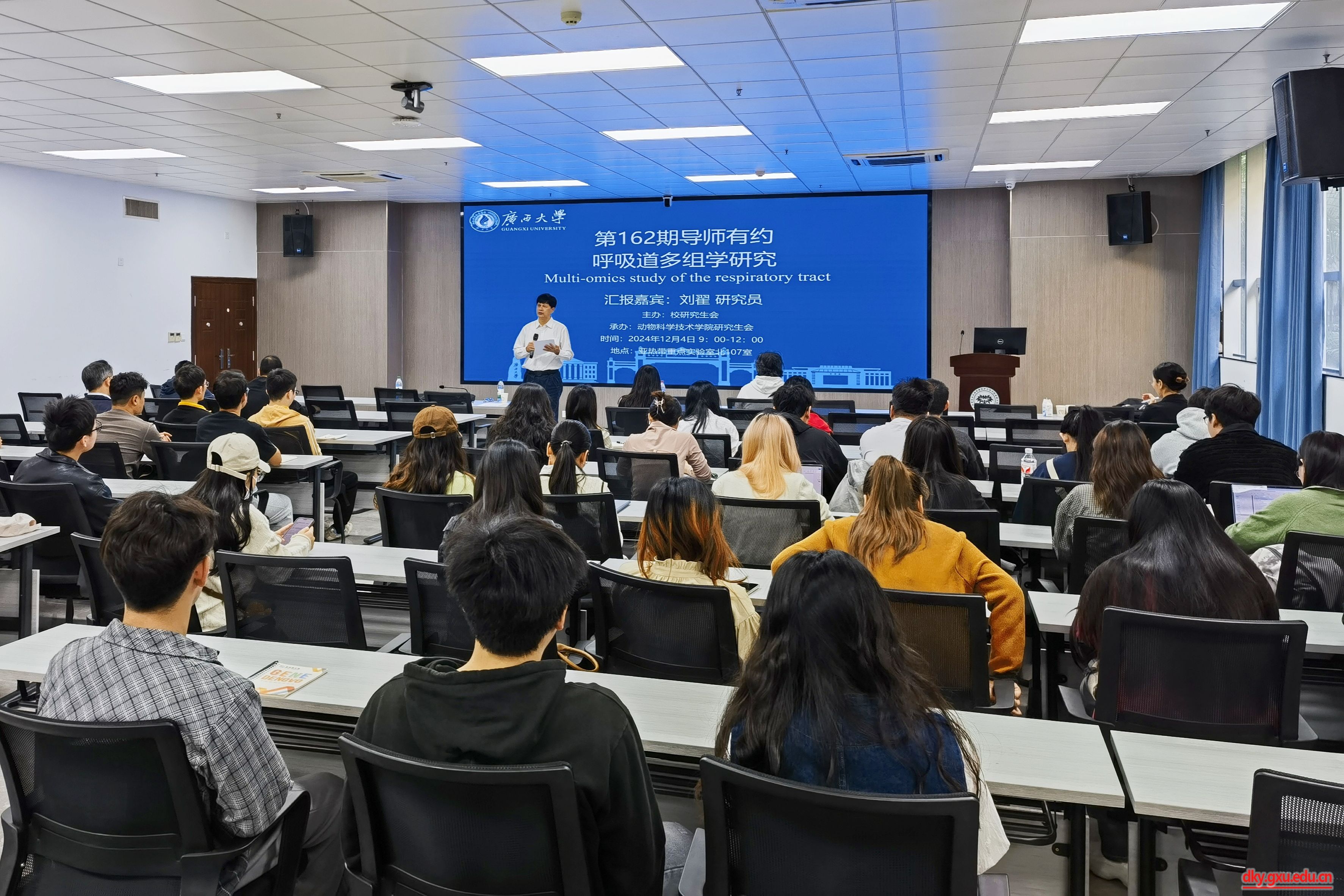 为搭建研究生与导师之间的互动平台,营造良好的学术文化交流氛围,12月4日上午,由广西大学研究生会主办,乐动(中国)研究生会承办的第162期“导师有约”活动在国家重点实验室北107报告厅举行,主题为“呼吸道多组学研究”,中国科学院武汉病毒研究所研究员刘翟受邀主讲,100余名研究生代表现场聆听报告。活动由广西大学原副校长、兽医学科带头人罗廷荣主持。