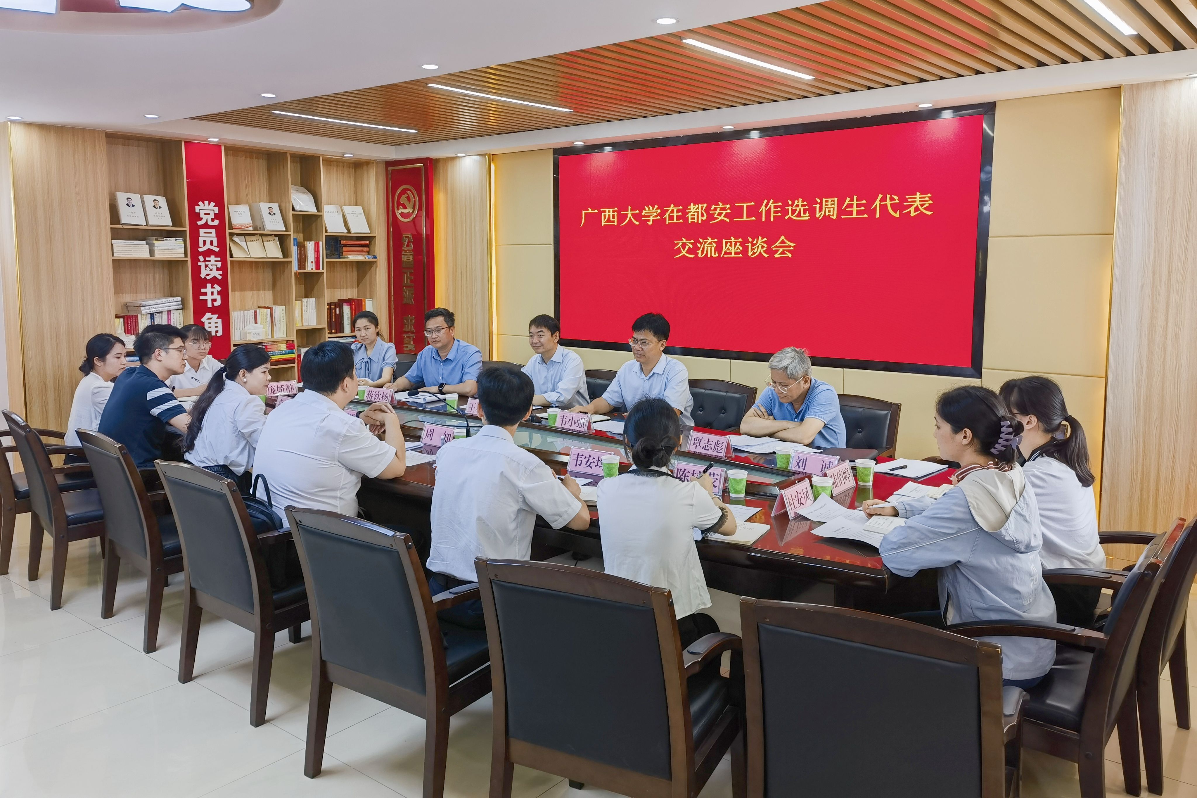 5月16日至17日,乐动网页版登录入口党委书记韦小强带队赴都安县、大化县调研选调生工作,并分别在都安县委组织部、大化县委组织部召开座谈会。广西大学学生工作部(处)副部(处)长王利军,乐动(中国)副院长蒋钦杨,团委书记刘诚,动物医学系副主任方芳,教学秘书覃志彪参加活动。