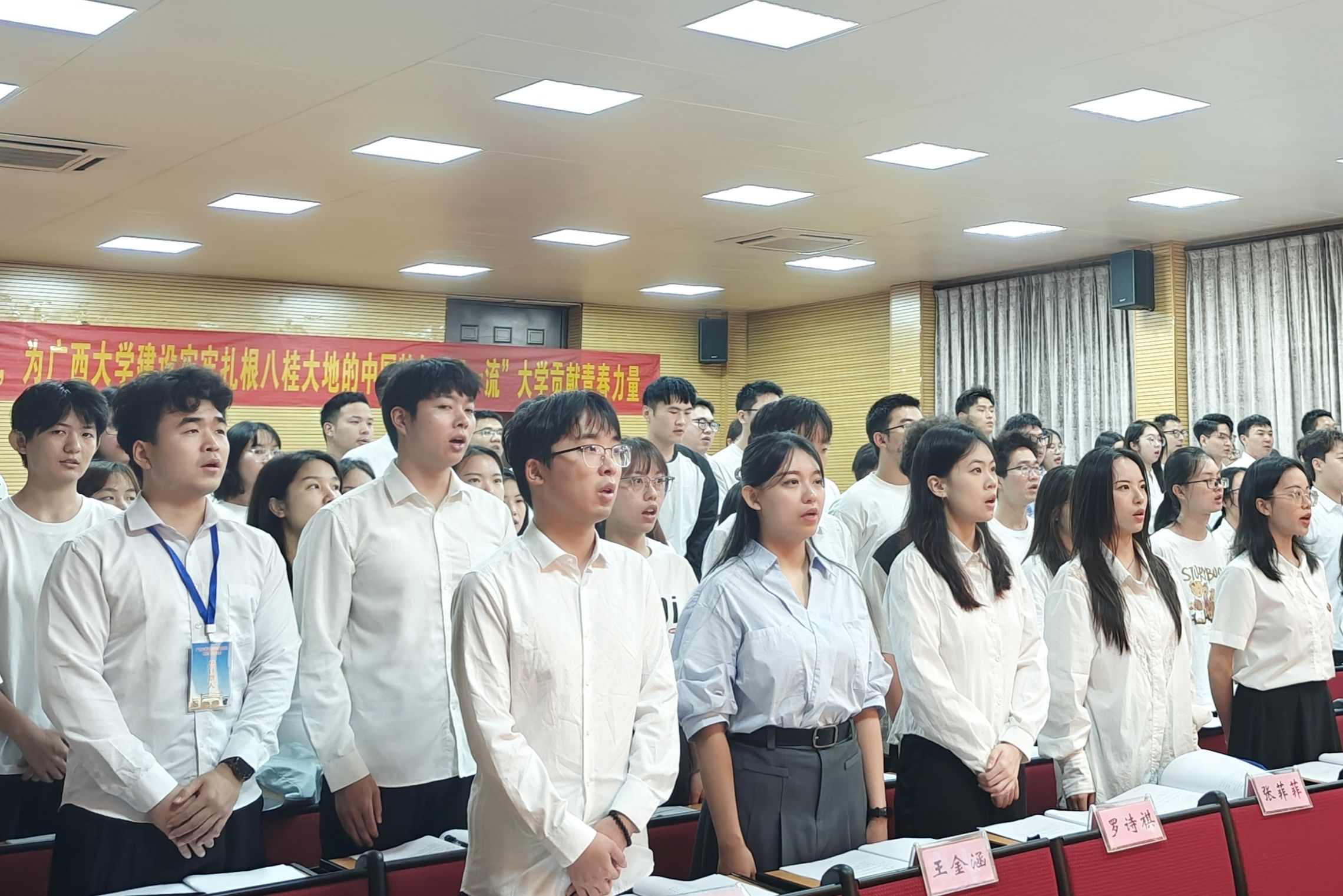 广西大学研究生会主席团成员覃湘怡同学、计算机与电子信息学院研究生会执行主席史承悦同学分别在大会上致辞。