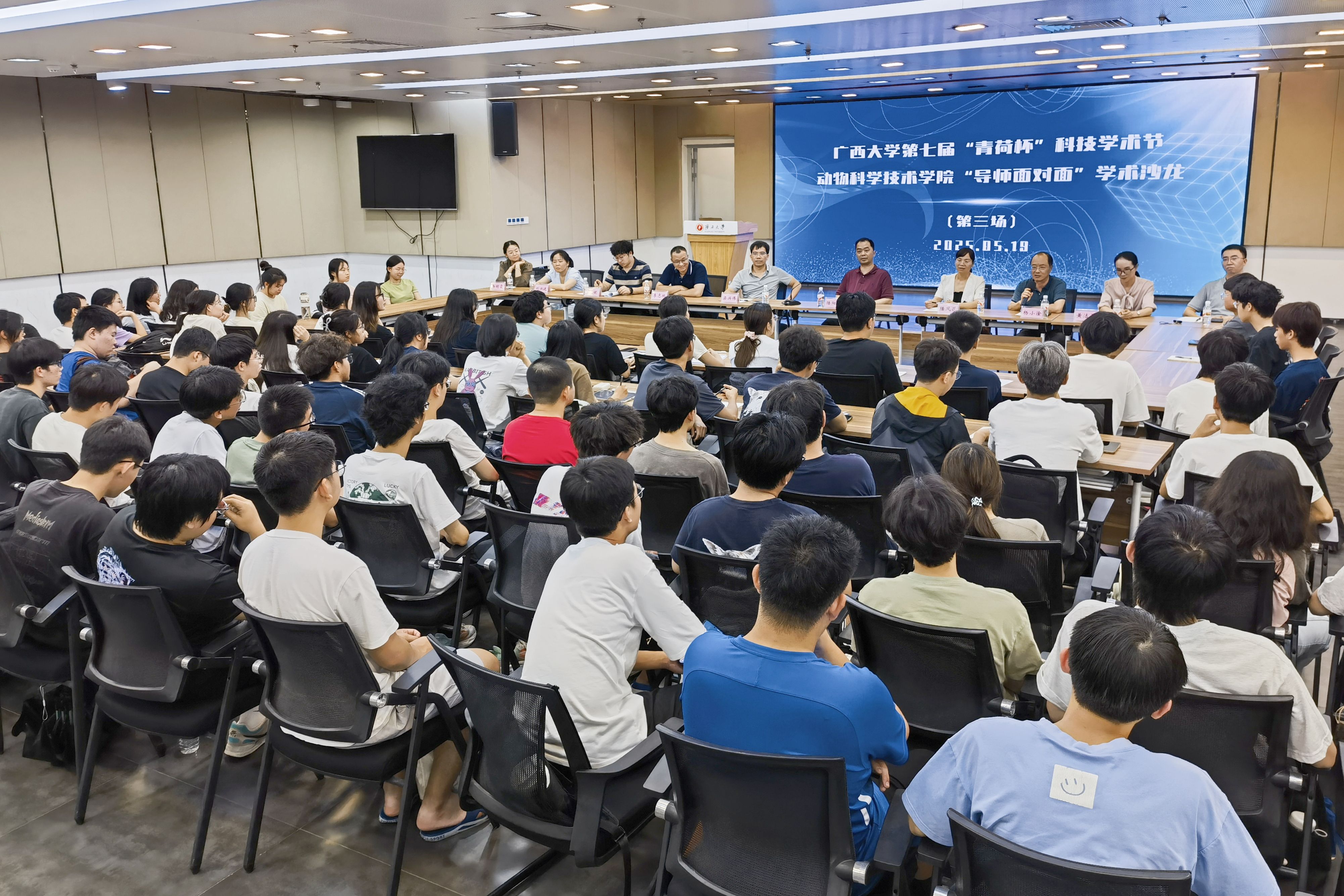 为巩固专业思想,加强学风建设,增进师生交流,营造学术氛围,5月19日晚上,乐动网页版登录入口在大学生活动中心三楼会议厅举办第三季“导师面对面”学术沙龙(第三场),邀请陆阳清、陆凤花、邓彦飞、杨小淦、梁兴伟、黄洁萍、李志鹏、刘兴廷、王健、冉明霞10位导师嘉宾到场分享个人经历、人才培养和科研方向,并与学生互动交流,共同探讨学业规划、职业发展和个人成长。动物科学专业2024级全体本科生参加此次活动。