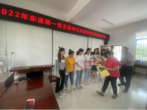 在欢送毕业生座谈会上,东退一支部书记陈熙全老师希望同学们在今后的工作坚持群众路线,始终站在人民群众的立场上考虑问题。鼓励同学们在人生的新阶段把握机会、突破自我、迎接挑战,并诚挚邀请同学们毕业后常回母校看看。老党员农世斌、李德富老师也寄语毕业生党员,希望大家主动适应新的学习工作环境,不忘学农爱农初心,勇担强农兴农使命,在助力国家乡村振兴战略的征程中展现西大学子的风采。老党员同志们还向全体毕业生党员赠送了毕业礼物。