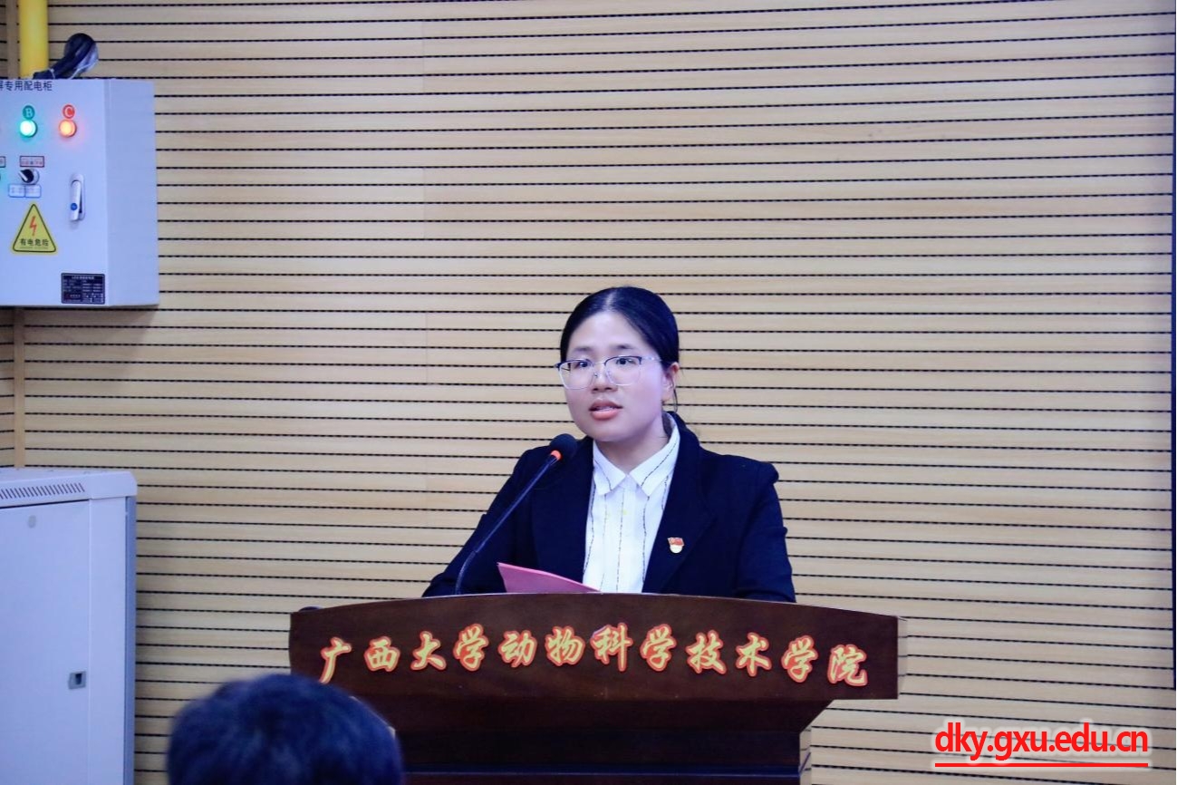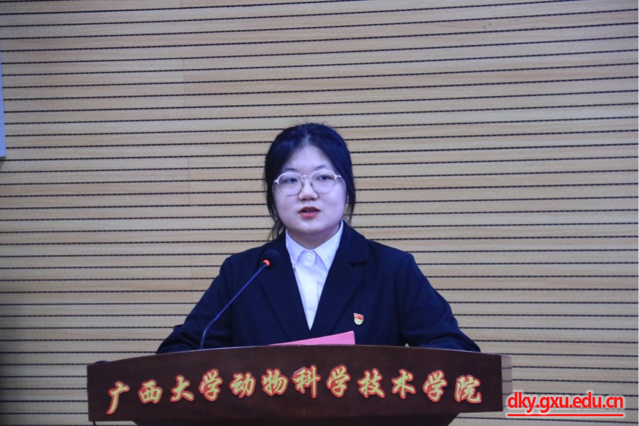 宣誓仪式第四项,预备党员代表刘思琪同学进行发言,她表示,作为新时代的学生党员,我们要深入学习贯彻习近平新时代中国特色社会主义思想,不负时代,不负韶华,在实现中华民族伟大复兴的时代洪流中踔厉奋发、勇毅前行,争取在青春的赛道上跑出当代青年的最好成绩。