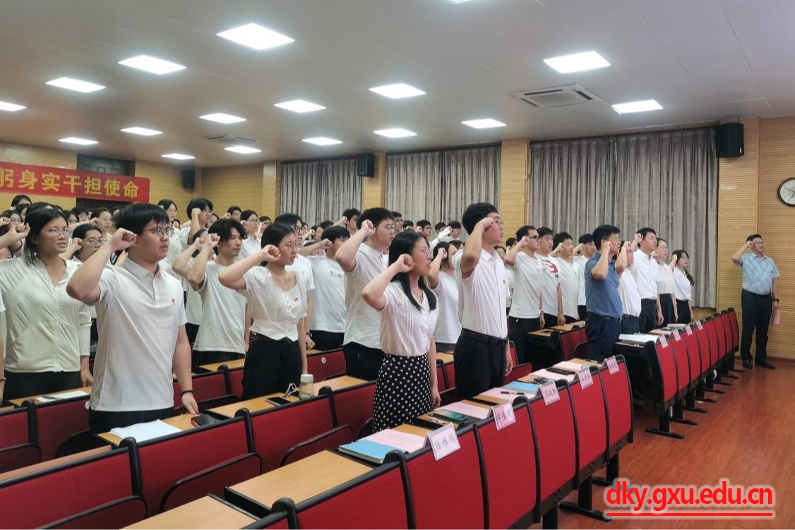 在热烈庆祝中国共产党成立104周年之际,为进一步激励和引导党员同志不忘初心、牢记使命,接续奋斗、砥砺前行,7月3日下午,乐动网页版登录入口在318报告厅举行预备党员入党宣誓仪式。乐动(中国)党委书记韦小强,党委副书记、院长陆阳清,党委委员、副院长何家康、蒋钦杨,团委书记刘诚,专职组织员施君,以及辅导员邹佳琪、马朝阳、陆维鸿参加仪式。会议由蒋钦杨副院长主持仪式。