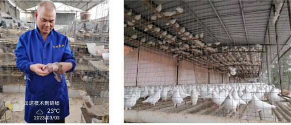 3月25日,到梧州市藤县大家乐种鸽场调研及指导春季鸽病防控。