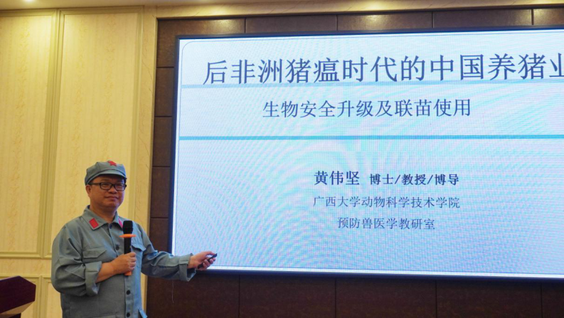 为深入推进党建引领业务、党建业务融合发展,促进院企合作优势互补,双方还举行了校企高峰论坛。农业农村部在第194号和第246号公告中叫停生产、进口、经营、使用部分药物饲料添加剂,废止仅有促生长用途的药物饲料添加剂等品种质量标准,国家层面“饲料禁抗”的法律法规正式出台,在全面推行抗生素饲料禁令的形势下,养殖业该如何发展新的养殖模式,饲料企业该如何转转型抓住机遇?在非洲猪瘟防控取得了阶段性成果,但疫情发生风险依然较高、控制和根除难度极大的后非洲猪瘟时代,企业该如何做好非洲猪瘟防控及生猪养殖工作?针对这两个关乎企业发展的热点话题,乐动(中国)沈水宝教授和黄伟坚教授分别做了题为“饲料无抗与广西现代生态养殖”和“后非洲猪瘟时代的中国养猪业——生物安全升级及联苗使用”的专题报告。