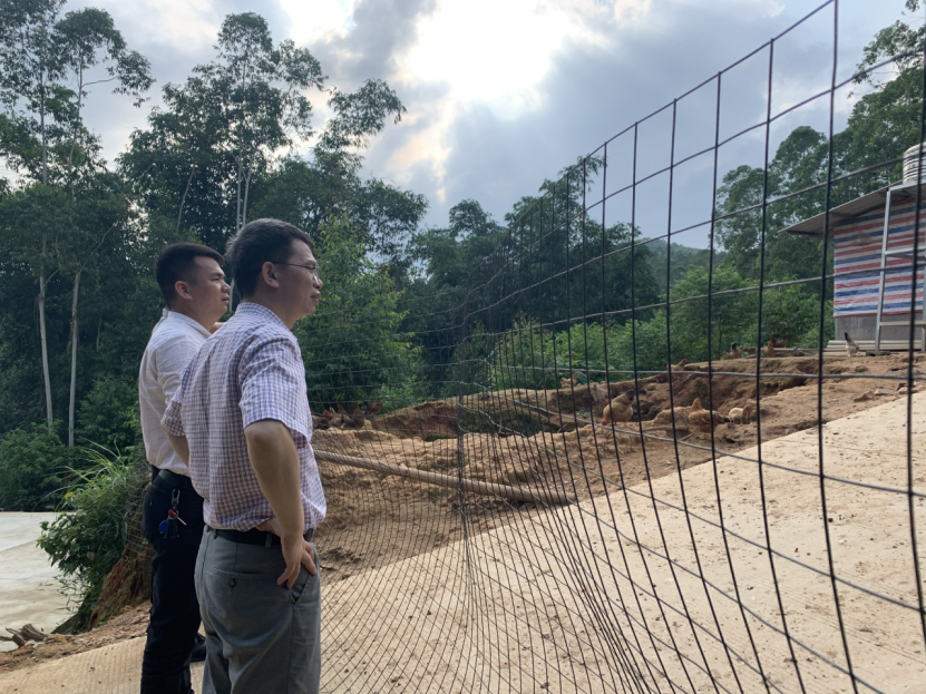 上图为韦天超副教授到广西巴马小谷鸡养殖有限公司的种鸡场、贫困村养鸡扶贫基地进行技术指导、交流和禽病防控知识培训;