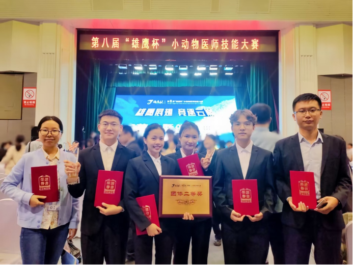 2023年9月12日至15日,由乐动网页版登录入口副院长何家康教授带队,邹灵秀、苏接瑜、丁嘉烽老师指导的本科生闭云贵、黎波宏、唐筱婷和周琪媛代表广西大学在吉林长春参加了第八届“雄鹰杯”全国小动物医师技能大赛总决赛。