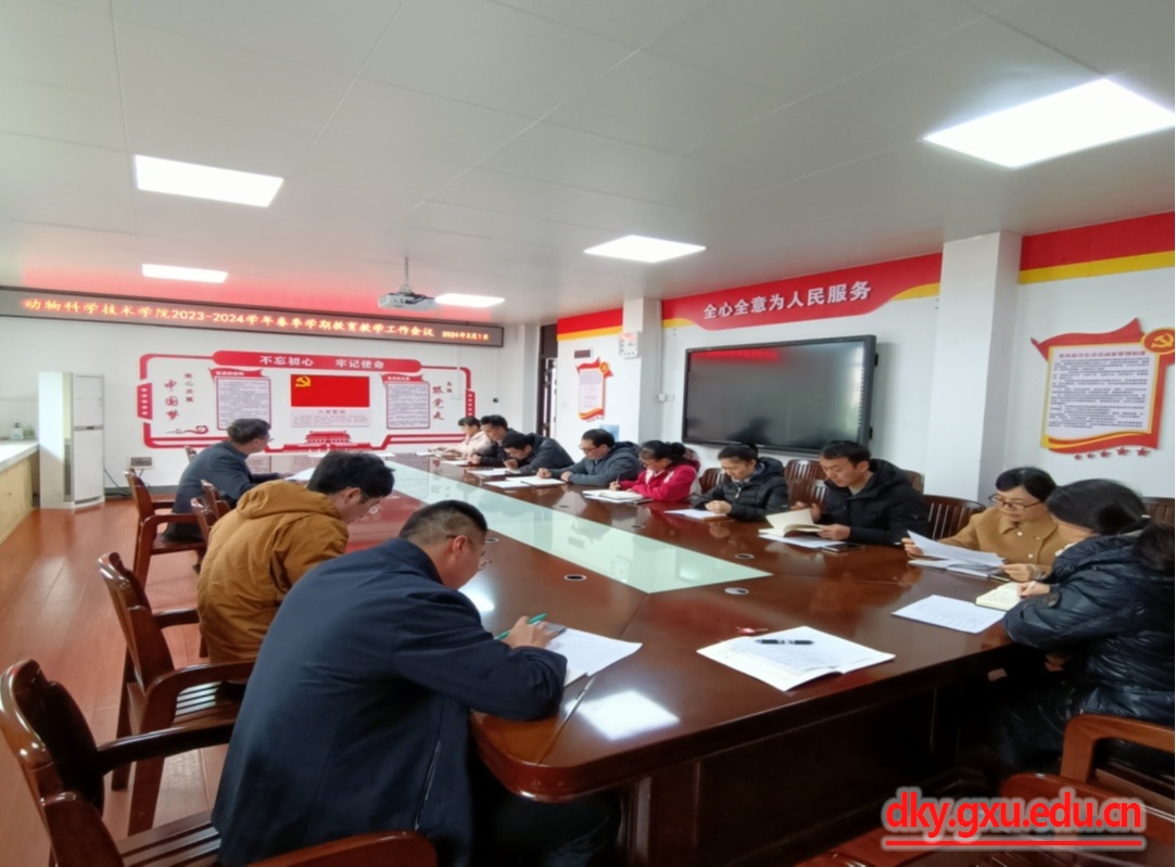 会议通报并按照学校2024年春季学期本科教学总体工作安排,梳理出学院层面的各基层教学组织、教学办公室工作事项,对加强教学改革项目申报、针对国家一流专业评估自查、招生宣传安排、教学团队建设、实习实践环节安排等方面作了详细的工作布置。同时,对照学校巡察发现的学院推进课程思政建设问题整改明细表逐一与相关各基层教学组织负责人、教学办公室详细落实工作内容、完成时间。