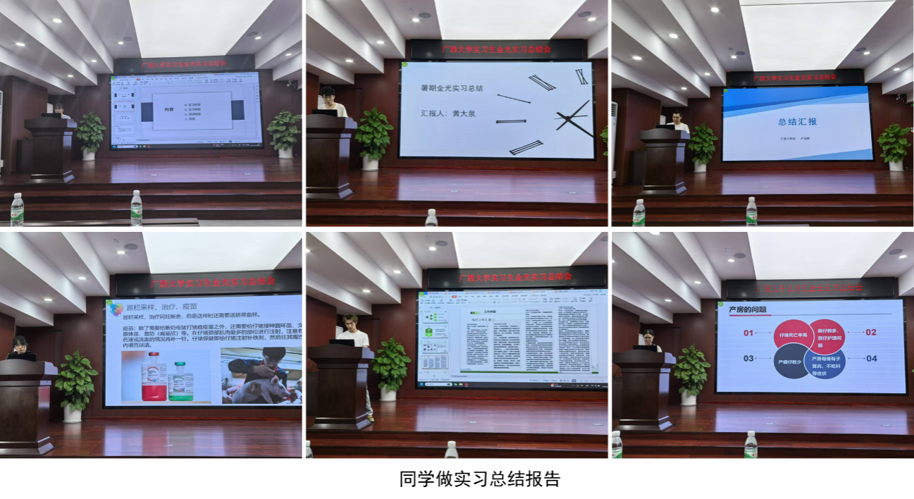 实习结束,金光畜牧公司举办了总结会,每位学生通过PPT汇报了自己的实习收获和心得体会。公司领导与参会老师进行了逐一点评,一针见血指出不足之处,同时对同学们的实习表现和所取得的成绩予以充分肯定。学生们纷纷表示,从最初的不安和焦虑,到最终的依依不舍,源自金光畜牧自上至下的包容和无微不至的关怀,使得他们在实习中克服困难,顺利完成实习。