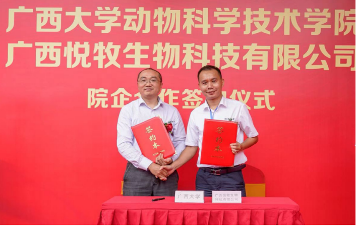 乐动网页版登录入口司红彬副院长与广西悦牧生物科技有限公司总经理张远波代表双方现场签署了院企合作协议书。乐动网页版登录入口将充分发挥自身理论与技术领域的优势,为广西兽医社会化服务示范点兽医人才开展统一培训,补充理论基础知识及规范实验操作技术,率先共建联合研发平台,共同推进“产学研用”的协同创新的新农科人才培养模式,做好兽医社会化服务的人才支撑,为地方经济发展做出贡献。