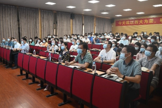 常务副院长陆阳清教授主持报告会 报告会场的老师和学生们认真聆听报告