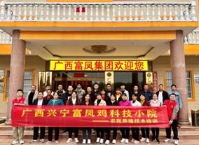 乡村要振兴,产业必先行!广西兴宁富凤鸡科技小院将生产实践与理论教学紧密结合,围绕乡村振兴战略,重点抓好高科技人才队伍建设,推进以产业技术需求为导向的科学研究,充分发挥小院模式优势,不断凝聚新动能,努力把小院打造成人才培养的新高地、服务产业的新典范和助力乡村振兴的新样板,通过“校企合作”把“科技小院”建设在农业生产第一线,培养“学农、知农、爱农、干农”创新应用型畜牧兽医人才。