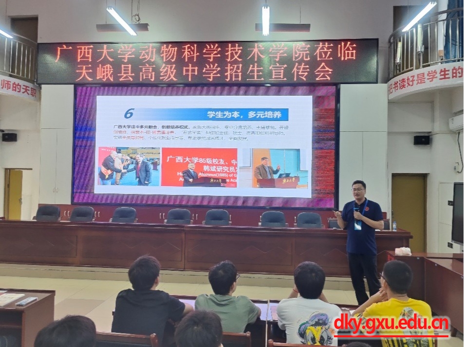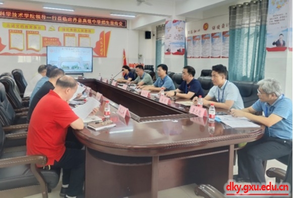 为切实提升广西大学本科生生源质量,吸引更多优秀学子到我校深造,6月27日-28日,乐动(中国)党委书记韦小强、院长陆阳清、副院长蒋钦杨、动物科学系主任李辉、动物医学系副主任于美玲、教学秘书覃志彪、专任教师韦英益、辅导员马朝阳一行8人先后前往河池市都安瑶族自治县高级中学、南丹县高级中学和天峨县高级中学开展本科生招生宣讲工作。