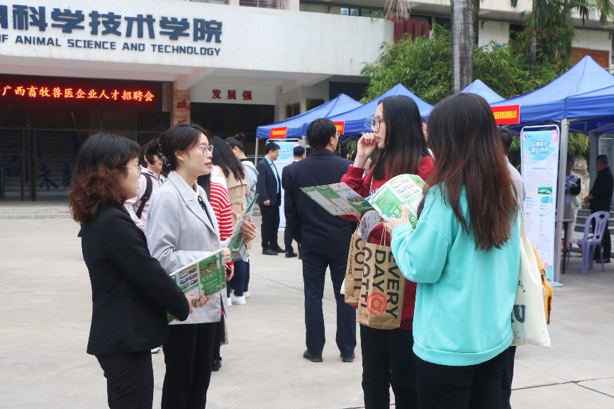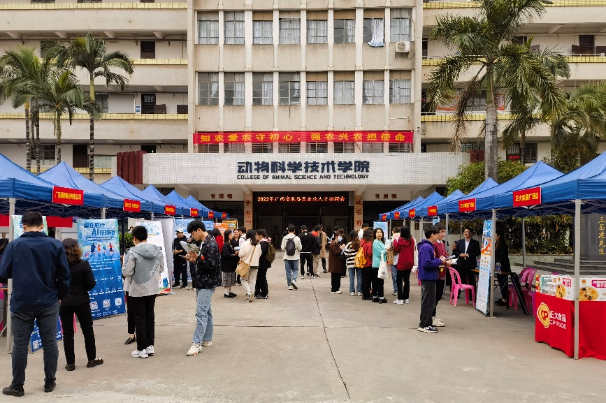 本次招聘会邀请了正大集团、广西农垦、自治区水牛研究所、温氏集团、双胞胎集团、力源集团、大北农集团、牧原集团、扬翔股份、新希望六和、瑞鹏宠物医疗等来自全国各地的60余家畜牧兽医、食品生产、生物医药、宠物诊疗等领域用人单位来校选聘英才,提供了生产管理、技术服务、产品研发、市场营销等千余个招聘岗位,涵盖本科、硕士和博士多个层次,为学生就业、实习带来了更为广阔的选择空间和发展平台。